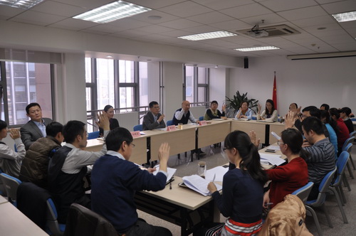 中心主任戴国庆代表中心全体职工讲话,祝贺新当选的工会委员,并感谢上一届工会委员们的辛勤劳动和做出的成绩。